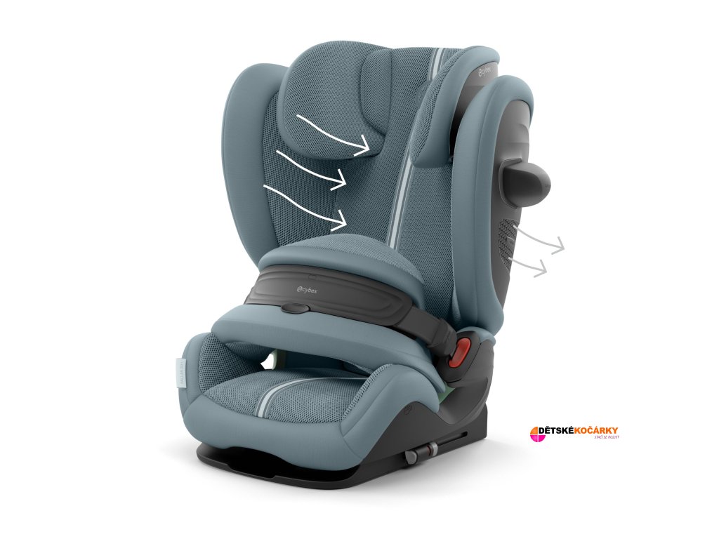 Autosedačky CYBEX Pallas 2v1 rodinám již léta zajišťují bezpečnost dětí od batolete až po teenagera. Autosedačka Pallas G3 je vybavena oceňovaným štítem proti nárazu, který chrání podobným způsobem jako nafouknutý airbag, a v případě čelního nárazu snižuje riziko poranění krku o 25 %. Štíty proti nárazu přinášejí maximální bezpečí, rychlé zajištění jedním cvaknutím a děti je navíc upřednostňují před pásy, protože nabízí větší volnost pohybu a lépe se v nich odpočívá. V případě bočního nárazu zajišťuje inovativní sklopná opěrka hlavy až sedminásobně větší bezpečnost hlavy, zatímco systém lineární ochrany při bočním nárazu Plus snižuje sílu nárazu až o 20 %. Všestranný systém odvětrávání a sklopení sedačky jednou rukou zaručují ideální prostředí pro cestování i pohodovou polohu.