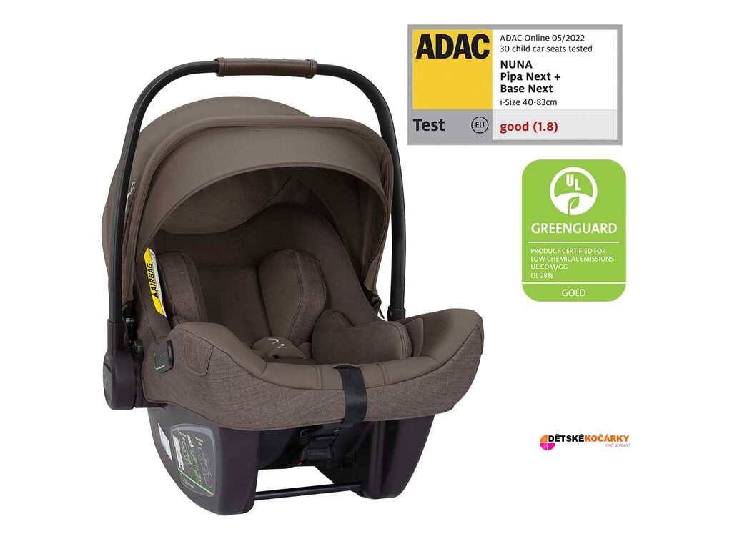 Autosedačka NUNA Pipa Next převyšuje nároky nejpřísnější současné normy, využívá výplně z patentované paměťové pěny a na rozdíl od jiných lehkých autosedaček ji stále můžete připoutat i pásem vozidla. Po dokoupení báze získáte zcela unikátní automaticky výklopnou boční ochranu. Autosedačka váží pouhých 2,8 kg a tak ji přenesete snadněji než jiné sedačky. Navíc je luxusně vybavená - unikátní clona Dream DrapeTM umožní dítěti nerušeně spát a odpočívat bez ohledu na počasí. Clona dítě ochrání před slunečními paprsky, je uchycená pomocí magnetů a tak je zcela neslyšná. Líbit se Vám budou i skvělé materiály s vlnou Merino, nebo jednoduché nastavení výšky pomocí jedné ruky.