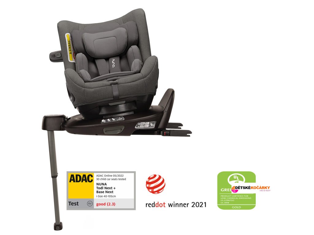 NUNA TODL™ next poskytuje fantastickou úroveň bezpečí. Ta je zajištěna použitím plastů v nejvyšší kvalitě, vyztužením ocelovými prvky s technologií Steel Strength Technology™, patentovanou paměťovou pěnu Tailor tech™, výplněmi EPP a dodatečnými prvky boční ochrany. V neposlední řadě umožňuje cestovat dětem proti směru jízdy přibližně do 4 let, což je jednoznačně nejbezpečnější způsob cestování.