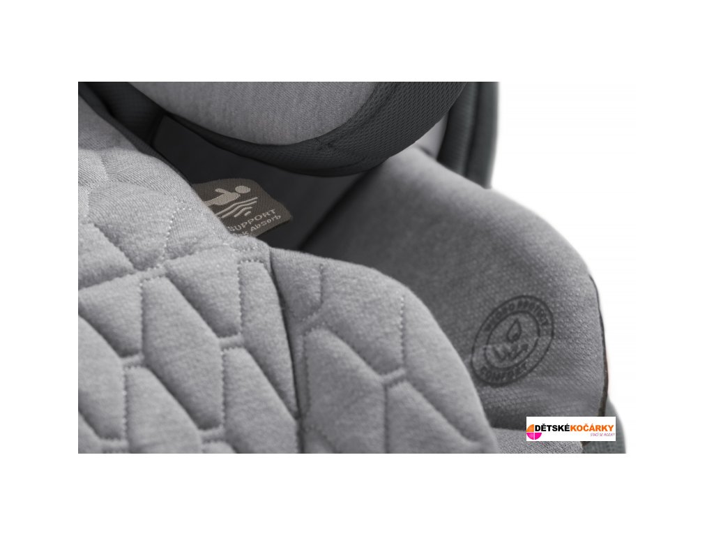 Autosedačka se do auta připevňuje s pomocí úchytů Isofix. Podpůrná noha v případě nárazu pomáhá udržet autosedačku na místě. Systém boční ochrany SPS chrání hlavu i boky dítě v případě bočního nárazu. Sedák otočný o 360° umožňuje výběr mezi polohou po nebo proti směru jízdy. Sezení proti směru jízdy zajišťuje vyšší ochranu hlavy a krku dítěte. Autosedačka umožňuje použití proti směru jízdy až do cca 4 let (do 105 cm, do 18,5 kg). Od 15 měsíců (od cca 76 cm) může být sedačka umístěna i po směru jízdy. Otočný sedák usnadňuje i připoutání dítěte. Pro maximální pohodlí dítěte je autosedačka potažena kombinací měkké, prodyšné bambusové tkaniny a textilie vyráběné s ohledem na udržitelnost životního prostředí z recyklovaných PET lahví.