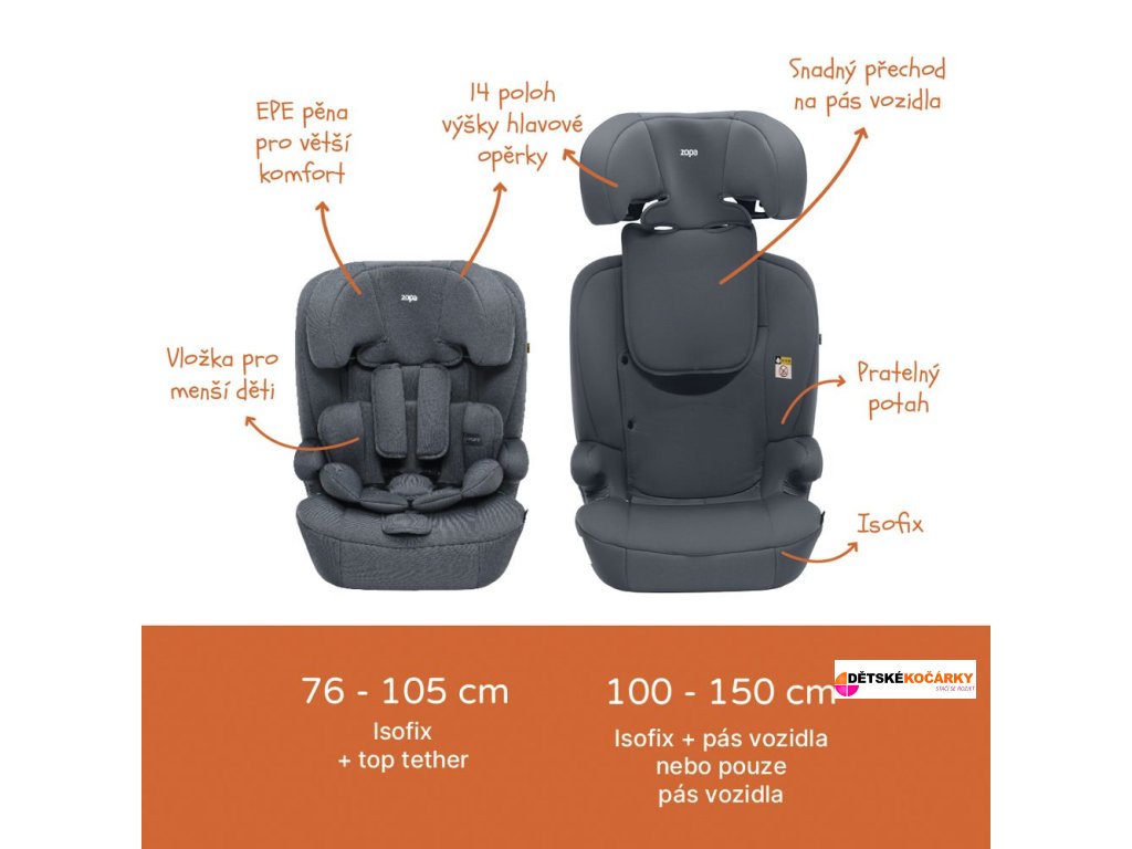 ZOPA Alfa i-Size isofix je praktická a spolehlivá autosedačka, která poroste s vaším dítětem od batolecího věku až do 12 let.