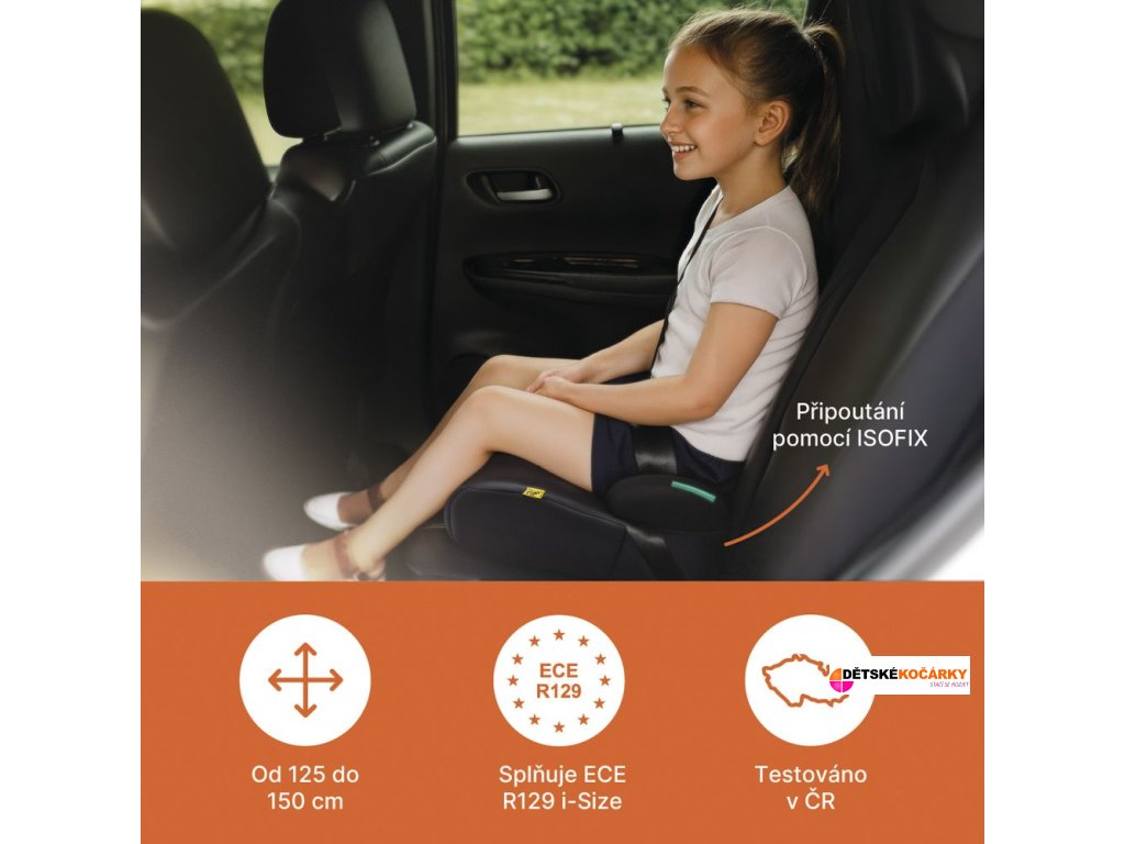 Autosedačka ZOPA Kappa R129 - to je podsedák pro bezpečnou přepravu dětí od 125 cm. Podsedák ZOPA Kappa R129 je praktické a efektivní řešení pro starší děti, které již vyrostly z klasické autosedačky. Je navržen pro děti s výškou od 125 do 150 cm, což odpovídá věku přibližně od 7 let. Díky upevnění Isofix je podsedák pevně spojen s karoserií vozu, což zajišťuje maximální stabilitu a zvyšuje bezpečnost. Podsedák slouží k jedinému, ale zásadnímu účelu: zajišťuje správné vedení bezpečnostního pásu přes kyčle a ramena, nikoliv přes měkké břicho a krk dítěte. Tím splňuje zákonné požadavky a zajišťuje maximální bezpečí dítěte s ohledem na jeho výšku. Díky své nízké hmotnosti a kompaktním rozměrům se s ním snadno manipuluje. Je ideální pro případy, kdy potřebujete rychlé a spolehlivé řešení pro příležitostné převážení dítěte v druhém voze, nebo když potřebujete ušetřit místo na zadních sedadlech. Potah lze navíc snadno sejmout a vyprat v pračce na 30 °C, což ocení každý rodič.