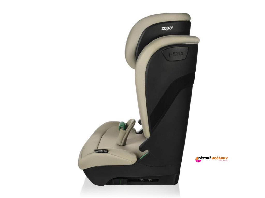 Prostorná autosedačka ZOPA Matrix i-Size s měkkými potahy a možností naklonění do 4 ergonomických poloh zajistí pohodlnou cestu i při delší jízdě a během spánku. Polohování se dá jednoduše nastavit pojistkou ve přední části autosedačky. Opěrka hlavy nabízí až 10 poloh nastavení, díky tomu autosedačka roste s dítětem. Autosedačku lze do vozidla nainstalovat pomocí bezpečnostního pásu, či pomocí ISOFIX kotvícího systému. Inovativní funkce nezávislých ISOFIX umožňuje vysunout každou stranu zvlášť a tím je proces instalace jednodušší. Indikátor správného nastavení a vodiče pásů jsou jistotou, že instalace autosedačky do vozu je správná.