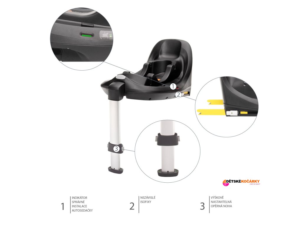 - indikátor správné instalace autosedačky na základnu