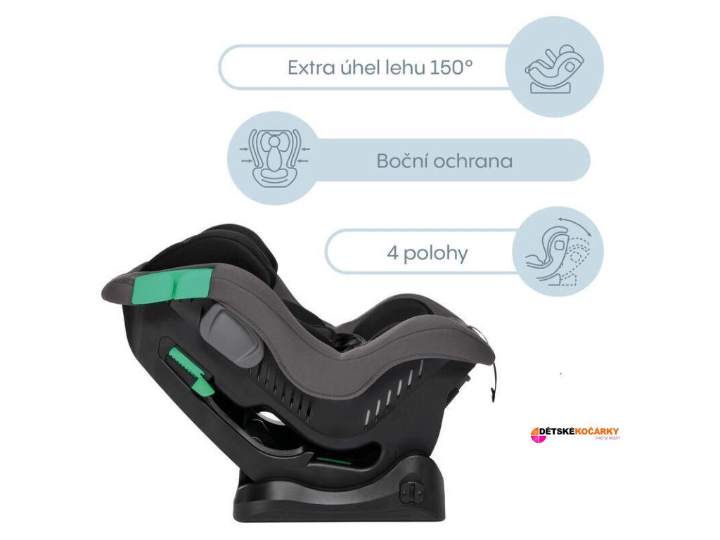 - extra ležící poloha efektivně zmírňuje síly působící na dítě v případě nouzového brzdění nebo nárazu