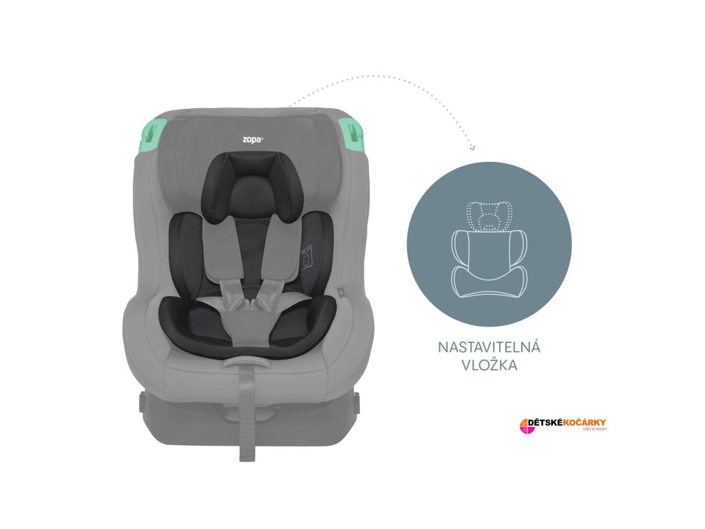 - nastavitelná vložka spolu s hlavovou opěrkou umožňují autosedačku přizpůsobit každé fázi růstu