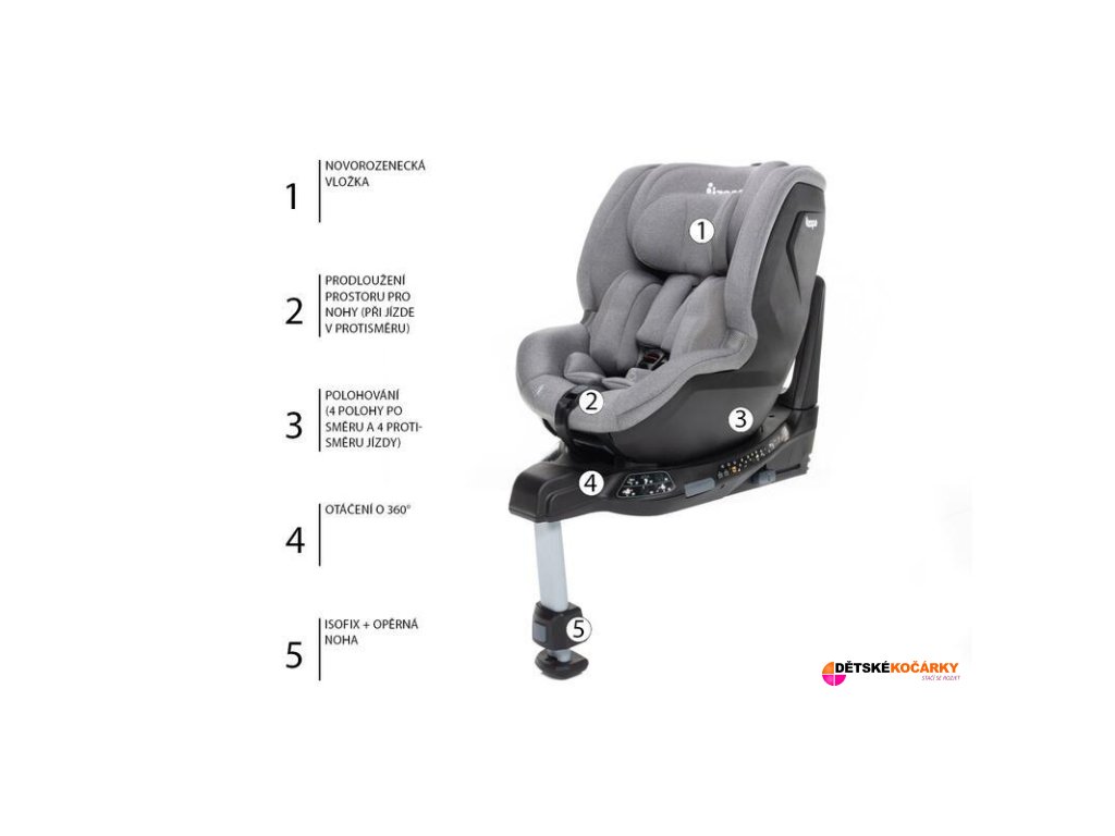 Autosedačka prošla nejnáročnějšími testy v Holandsku, splňuje normu ECE R129 i-Size a bude vyhovovat dětem od narození až do 105 cm výšky či 18 kg. Je plně otočná (360 °), což umožňuje nejenom měnit směr cestování ve všech 4 nastavitelných polohách, ale také zaručuje mnohem pohodlnější manipulaci s dítětem při nastupování a vystupování.