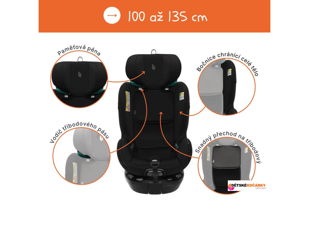 pozice v autě: proti směru směru jízdy (40 - 76cm)/po směru jízdy (76 - 135cm)