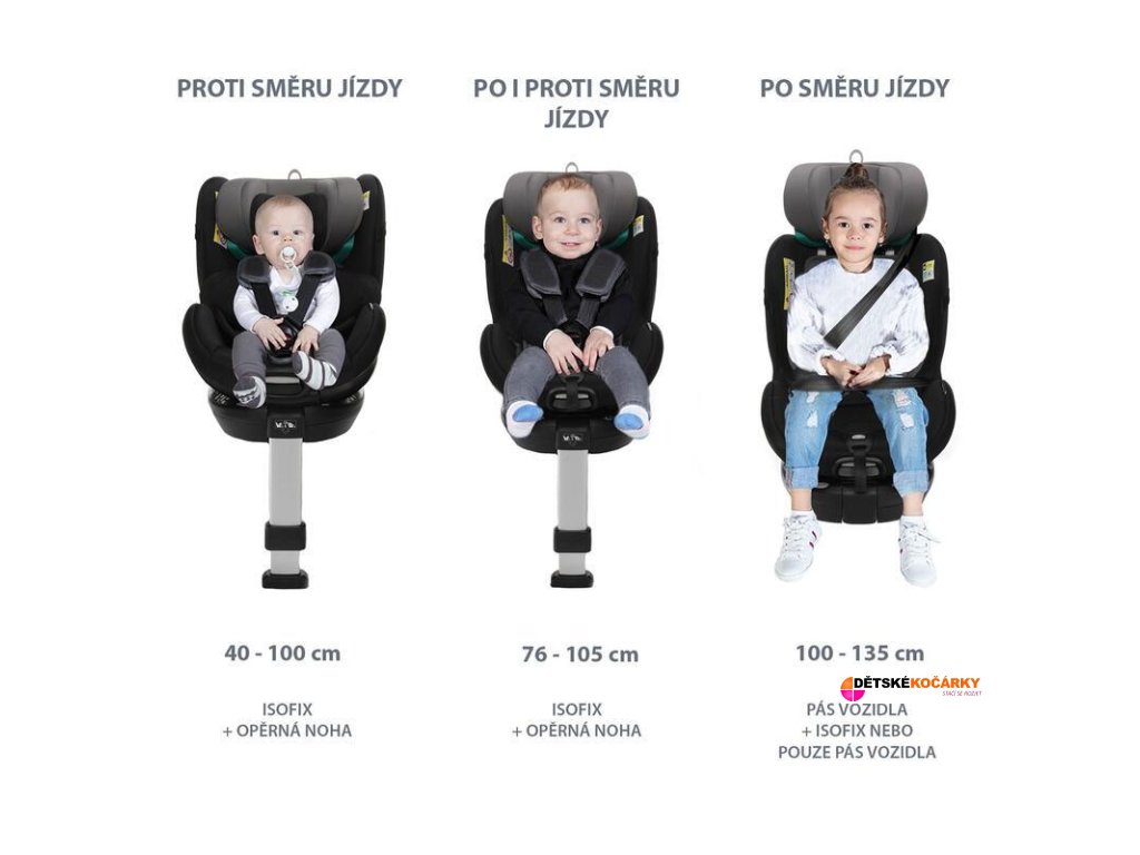 pozice v autě: proti směru směru jízdy (40 - 76cm)/po směru jízdy (76 - 135cm)