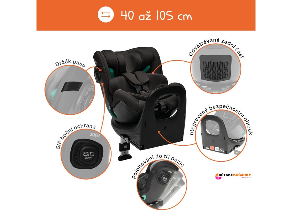 - otočná autosedačka pro děti od narození až do 135 cm
