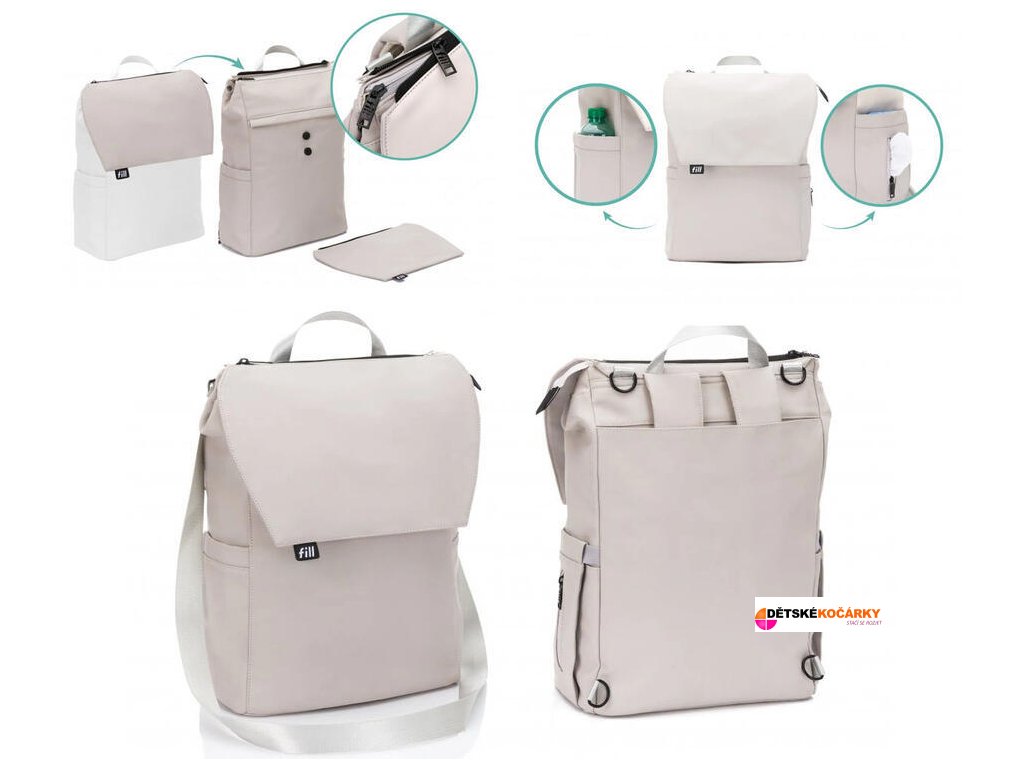 Elegantní, funkční a praktický batoh na pleny FILLIKID pro moderní rodiče - jeho měkký materiál je vodoodpudivý a je tak vhodný na procházku po městě, nákup i na výlet do přírody. Inteligentní vnitřní uspořádání batohu usnadňuje uspořádání plen, vlhčených ubrousků a dalších věcí na přebalování. Batoh je dodáván včetně přebalovací podložky a ohřívače lahví, který oceníte hlavně na cestách. Batoh je možné používat také jako tašku přes rameno. Nastavitelné popruhy se přizpůsobí vašim individuálním potřebám.