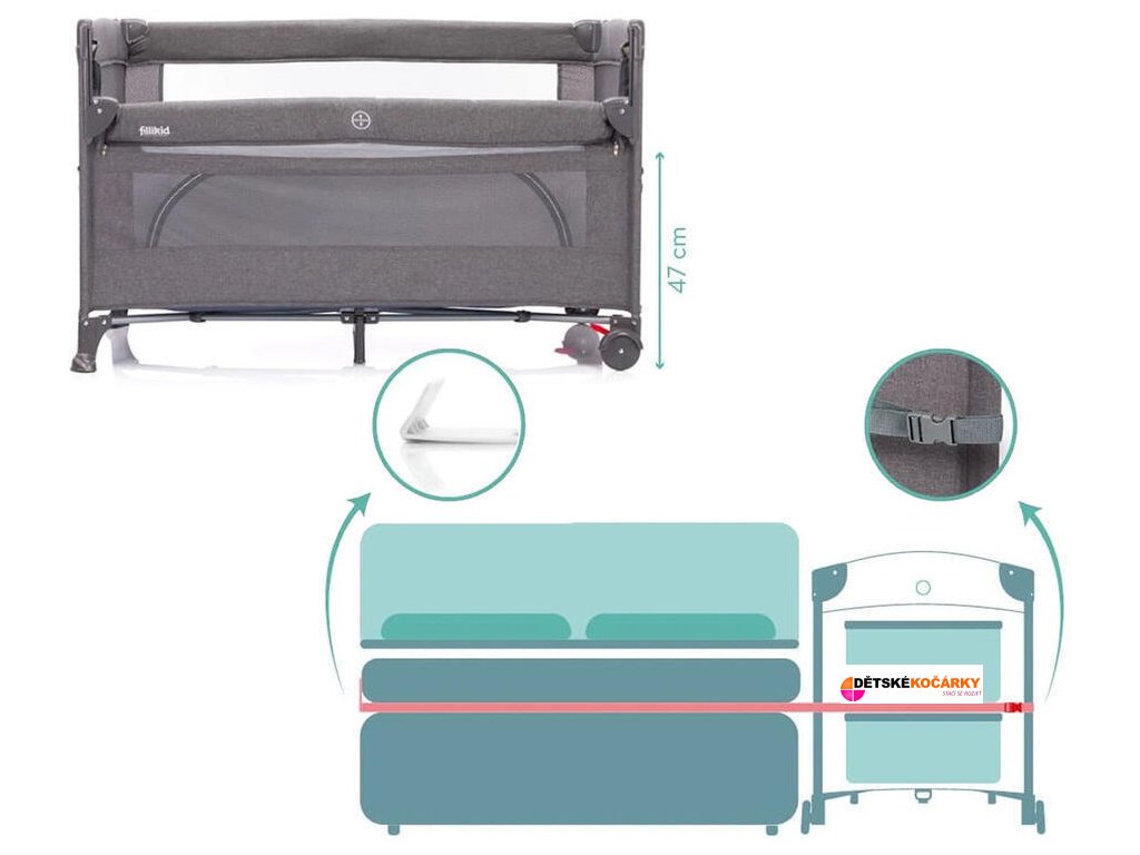 Cestovní postýlka FILLIKID Porto 2026, grey melange
