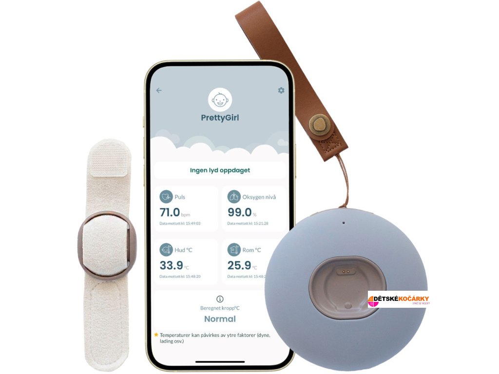 - pomocí pohodlného senzoru připevněného na paži nebo noze dítěte se měří informace o péči