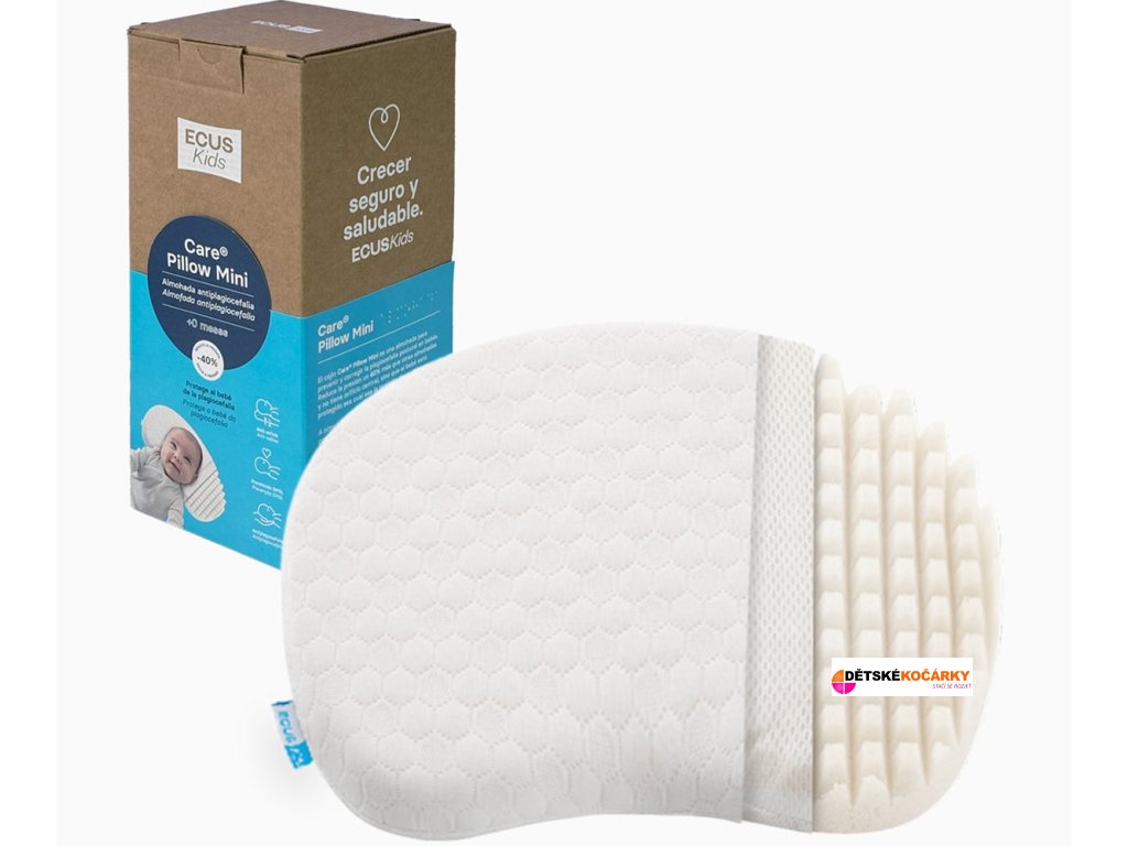 Dětský mini polštář ECUS KIDS Care pomáhá předcházet zploštění hlavičky (plagiocefalii) u kojenců. Snižuje tlak o 40 % více než jiné polštáře a nemá středový otvor, takže chrání dítě bez ohledu na polohu jeho hlavy. Polštářek se doporučuje používat, když je dítě vzhůru a vždy pod dohledem dospělé osoby, alespoň do 6 měsíců věku dítěte nebo do doby, než se dokáže samostatně převrátit.