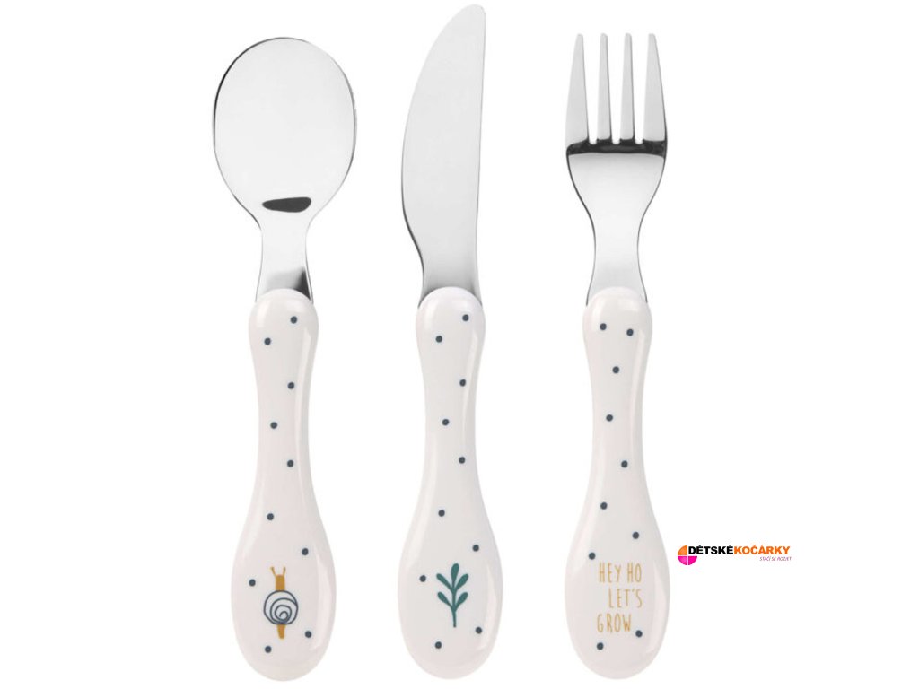 - dětská vidlička, lžíce a nůž v elegantním designu
