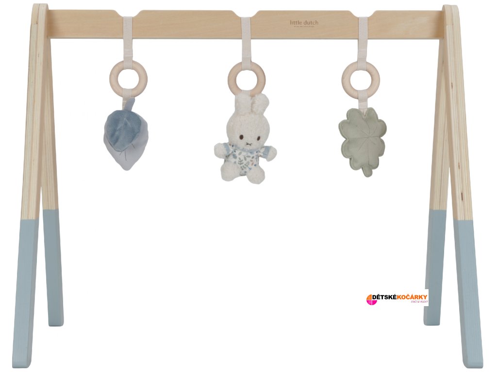 Stylová dřevěná hrazdička LITTLE DUTCH se třemi zavěšenými plyšovými hračkami v podobě králíčka Miffy, kytičky a lístku poskytne vašemu miminku spoustu zábavy při hraní na dece. Jednotlivé hračky lákají dítě ke zkoumání a dotýkání, při pohybu chrastí a šustí. Odnímatelné hračky je možné používat i samostatně. Hrazda je je součástí kolekce hraček Little Dutch Miffy, jejichž ústřední postavou je roztomilá králičí holčička Miffy, známá z knížek pro děti holandského spisovatele Dicka Bruny.