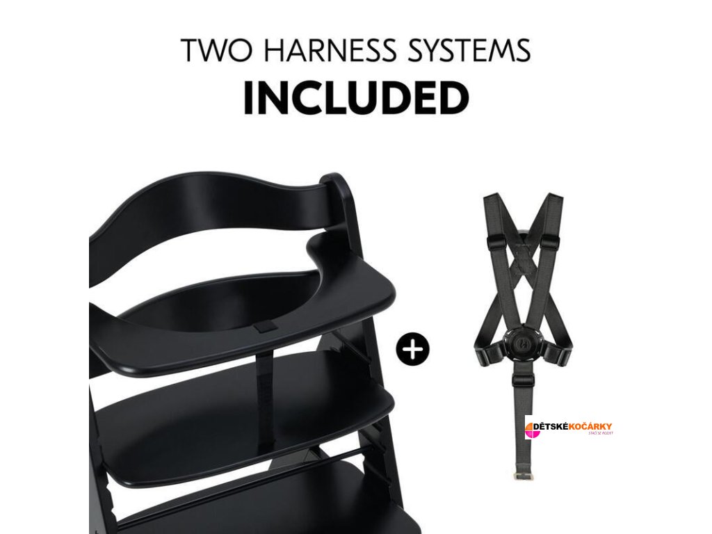 Set obsahuje: dřevěnou jídelní židličku + 5-ti bodový bezpečnostní pás + ochranný oblouk + bezpečnostní mezi-nožní popruh