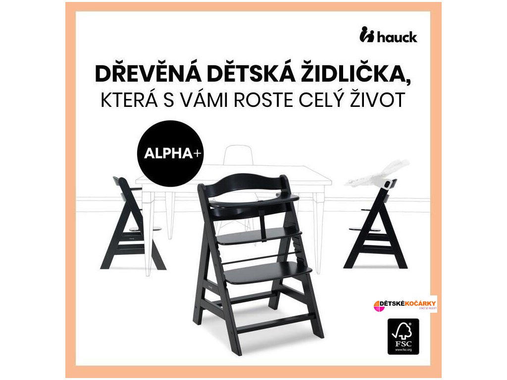 Dětská jídelní židlička HAUCK Alpha+ je vyrobená z kvalitního bukového dřeva s certifikací FSC®, která roste společně s dítětem. Díky stabilní konstrukci a integrovaným podlahovým kluzákům je židlička Alpha+ odolná proto převrhnutí. Jednoduchý a čistý design se hodí prakticky do každého interiéru. Rostoucí ergonomická židlička poskytuje pohodlí při sezení pro děti i dospělé. Bezpečnostní pás i pětibodové bezpečnostní pásy jsou součástí balení a pomáhají zajistit bezpečnost vašeho dítěte. Jsou také kompatibilní s dalším příslušenstvím HAUCK. Ochranný oblouk je nezbytný pro menší děti, později jej lze odejmout, aby mohlo dítě pohodlně sedět u jídelního nebo psacího stolu.Židlička je velice odolná a skladná a to díky odolné a stabilní kostrukci, kteoru lze snadno sklopit. Ve složeném stavu tak zabírá velice málo místa.