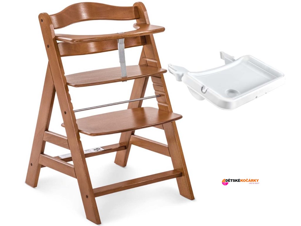 Dřevěná jídelní židle HAUCK Alpha+ 2026 + ZDARMA Pultík k jídelní židličce, walnut + Pultík k jídelní židličce