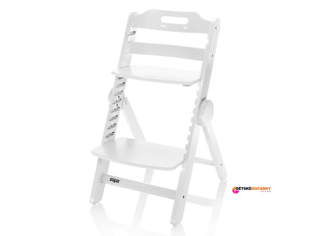 Dřevěná jídelní židlička ZOPA Clipp & Clapp je rostoucí dětská židlička z bukového dřeva s výškově nastavitelným sedátkem a podnožkou, která je skládací a nastavitelná bez nářadí. Židlička nabízí možnost výškově nastavit sedátko a podnožku a tím se dokonale přizpůsobí malému batoleti, které ochutnává svůj první příkrm, školákovi na cestě za poznáním při vypracovávání domácích úkolů, ale i dědečkovi, který mu s nimi pomáhá. Tato židlička je vyrobená z masivního bukového dřeva, nabízí výjimečnou odolnost a nosnost testovanou až na 110 kg, takže spolehlivě unese i dospělou osobu.