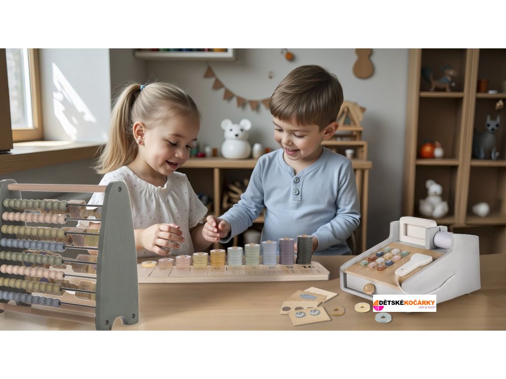 Dřevěná Montessori hra ZOPA pro výuku počítání. Interaktivní pomůcka pro seznámení s čísly a základními matematickými operacemi.