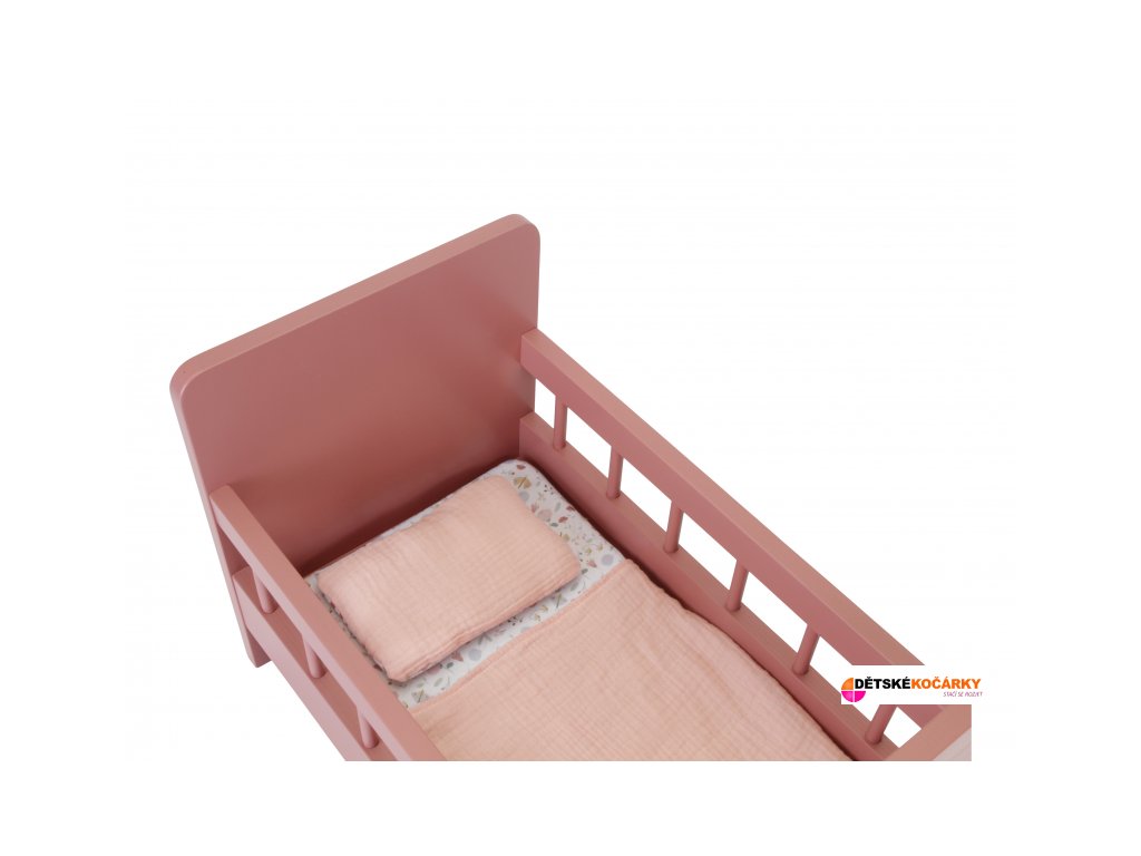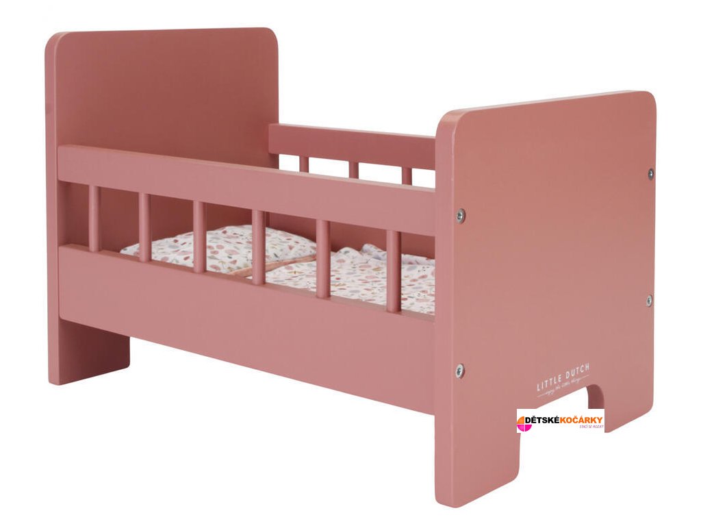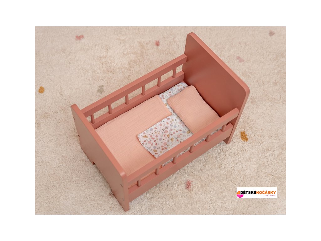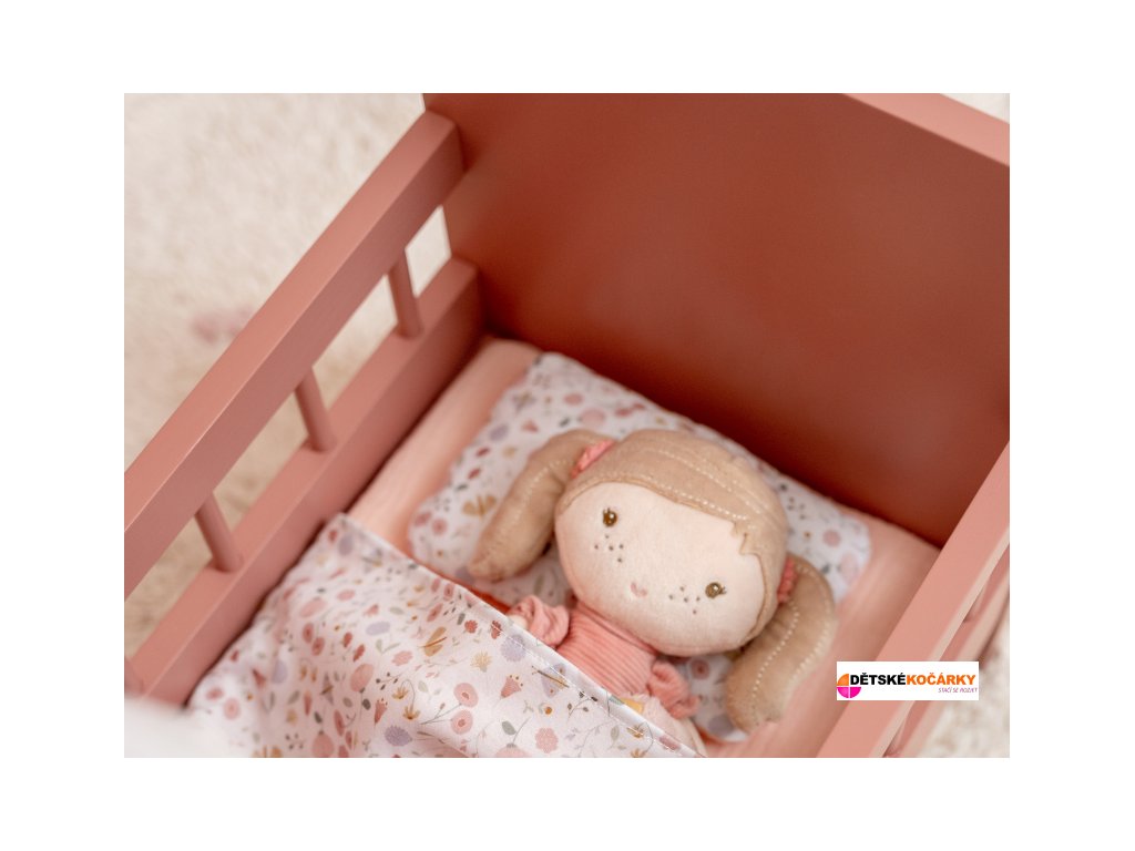 Dřevěná postýlka pro panenky LITTLE DUTCH s peřinkou Květiny a motýli 2025