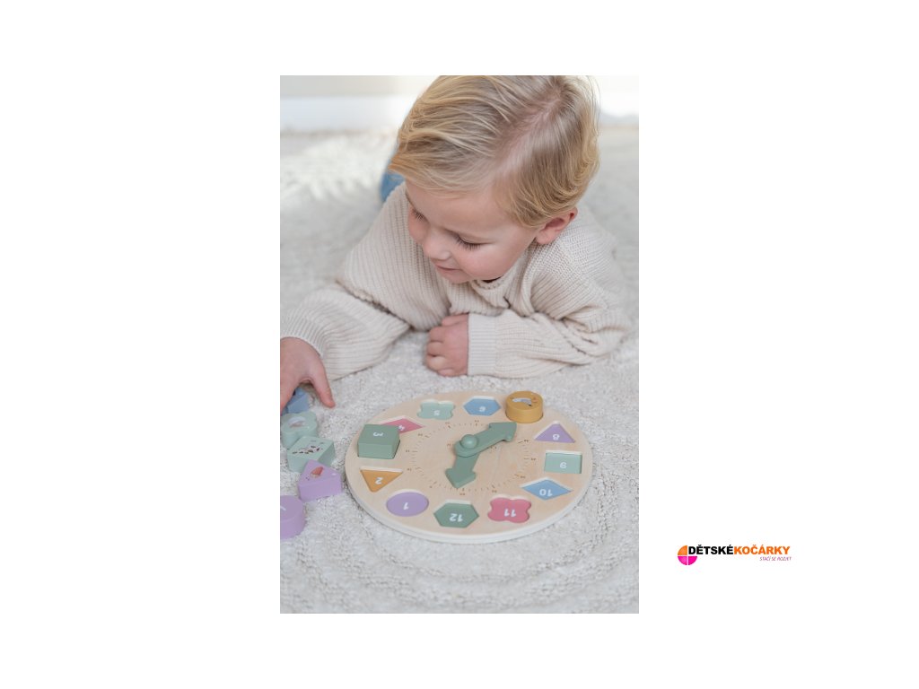 Dřevěné hodiny LITTLE DUTCH s puzzle kostkami Farma 2025