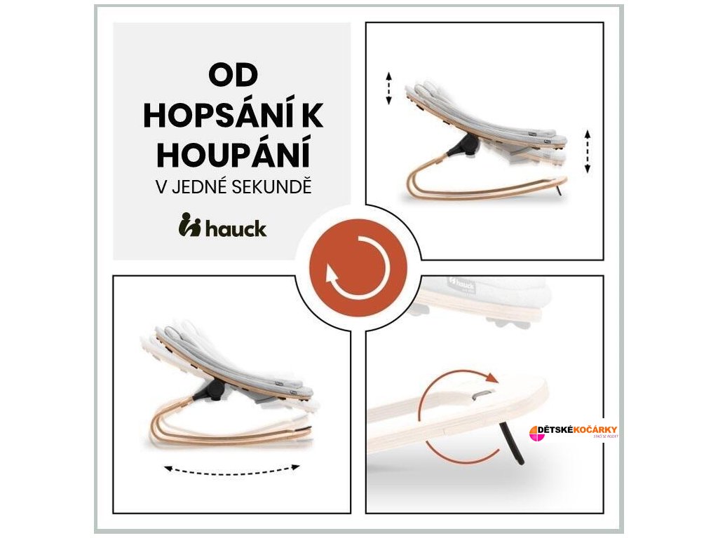 - rychlá změna funkcí - jednoduchým pohybem změníte pohyb křesílka z „hopsacího“ na houpací