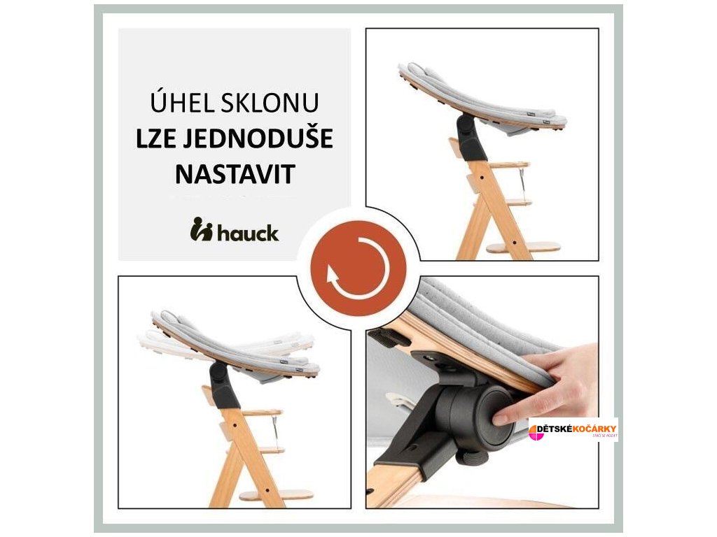 - díky přidanému adaptéru můžete křesílko snadno nasadit na konstrukci vaší dřevěné židličky hauck Alpha+ nebo Beta+ jako novorozenecké sedátko