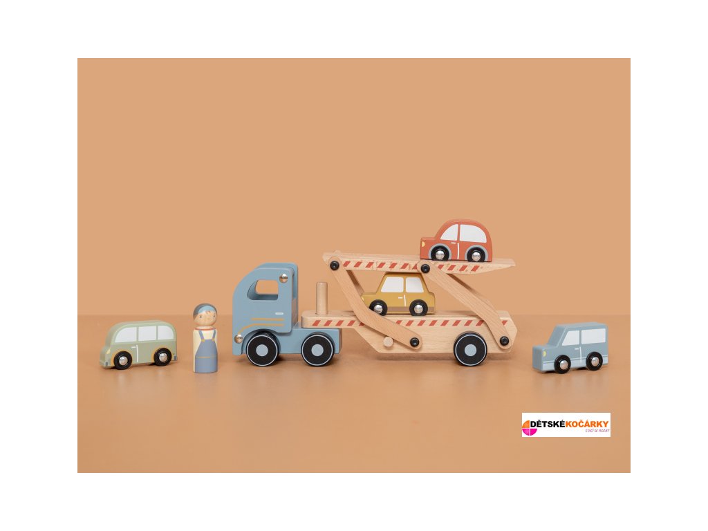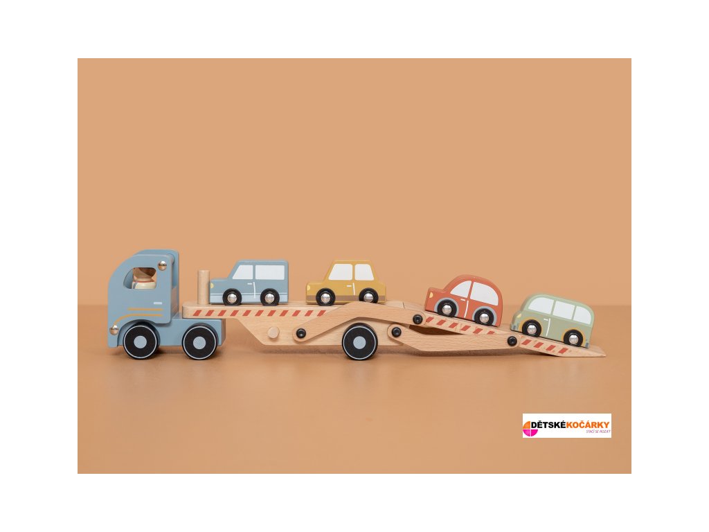 Dřevěný kamion se 4 auty LITTLE DUTCH je tou pravou hračkou pro všechny malé řidiče. Sklápěcí nákladní plocha umožní autům pohodlně najet na kamion a stejně pohodlně z něj opět sjet.
