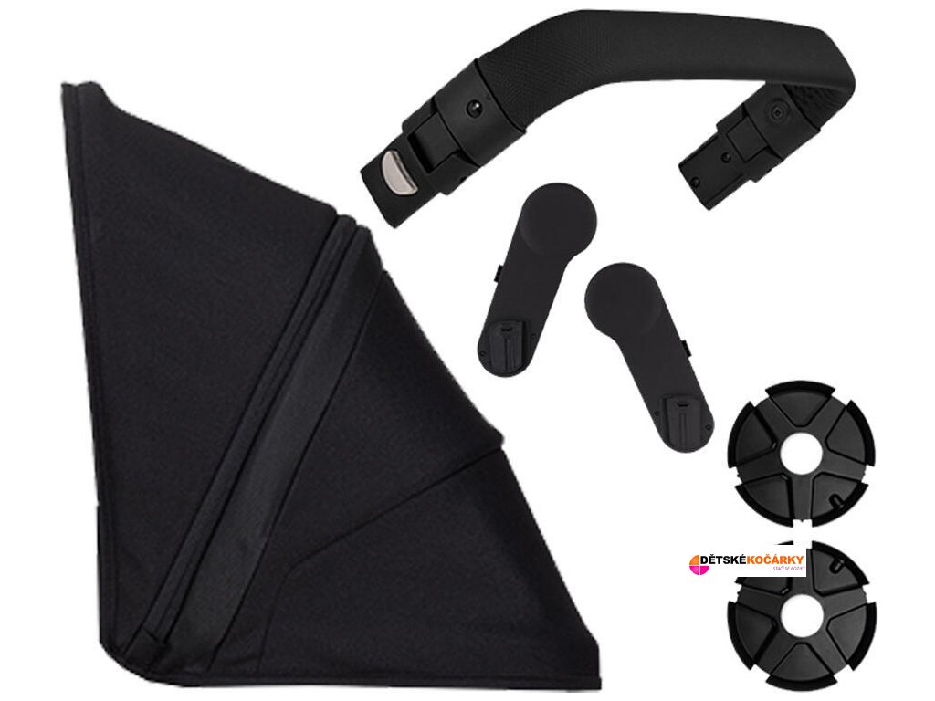 Set obsahuje: sluneční stříšku na sedátko/korbu + adaptéry na spodní sedátko/korbu + kryty zadních kol + přední madlo (dle barevné varianty kočárku)