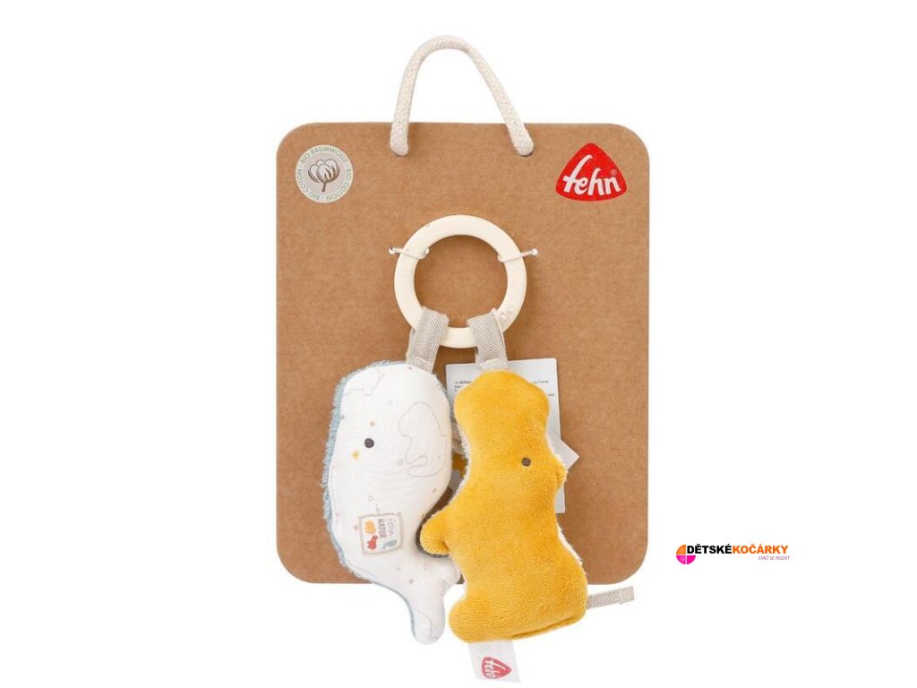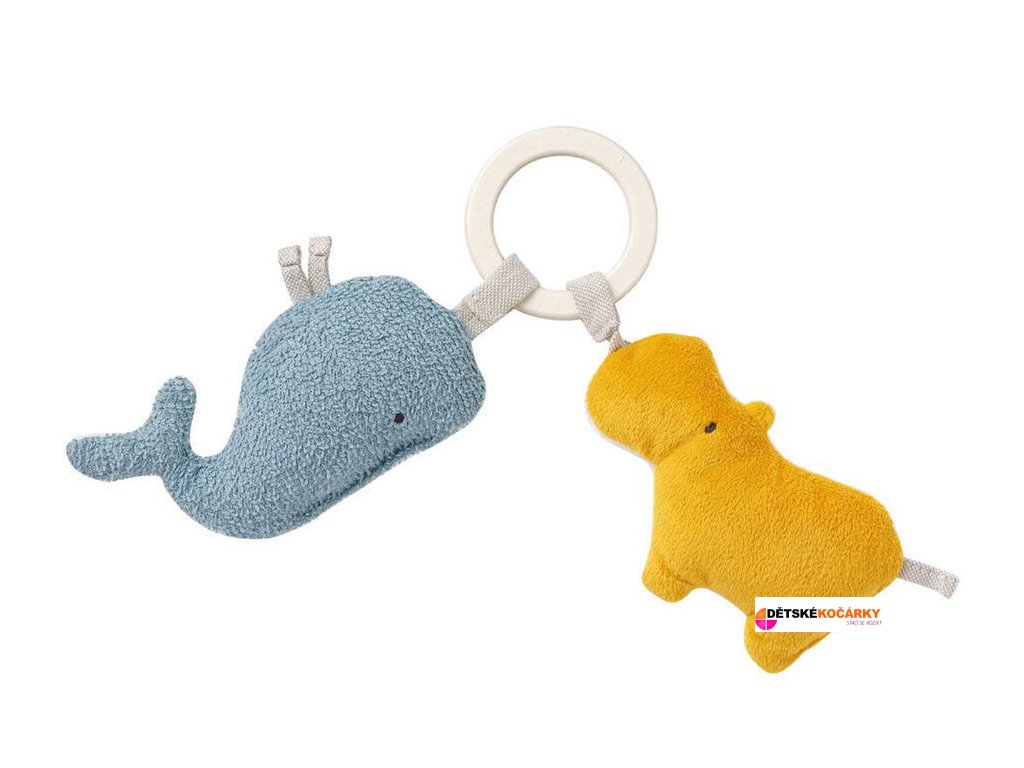 Malá roztomilá hračka FehnNature BABY FEHN s veselými zvířátky – hrochem a velrybou je hračkou, kterou si vaše děťátko na první pohled oblíbí. Díky praktickému poutku je možné ji umístit na kočárek, postýlku, do auta, či kdekoliv podle vašich představ. Tito přítulní kamarádi jsou svou barevností vhodní jak pro holčičku, tak pro chlapečka. Materiál, ze kterého je hračka zhotovena, je velmi příjemný na dotek malým dětským ručičkám. Zvířátka si získají hravě pozornost nejen zvědavých dětských očí, ale i oušek, protože v sobě obsahují i chrastítko.