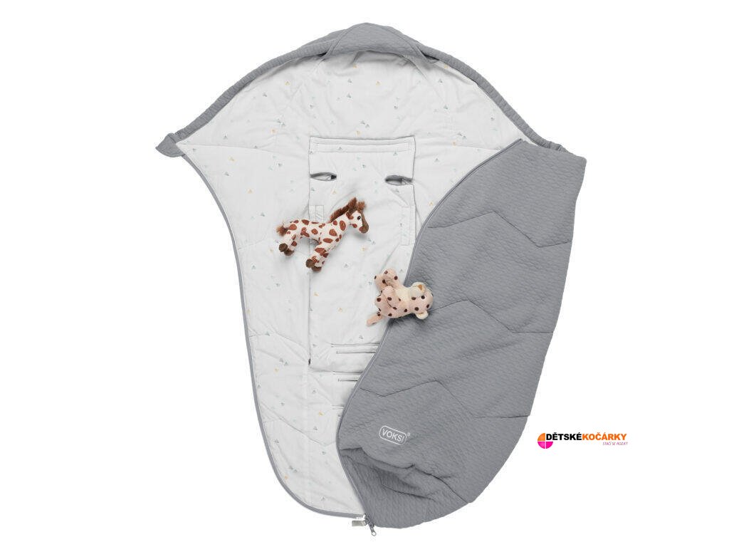 Příjemný jarní fusak do kočárku VOKSI Breeze Light poskytne miminku komfortní prostředí, když ještě není moc teplo a nebo není velká zima. Fusak je vyrobený z vysoce jakostní bavlny s moderním strukturovaným vzorem. Charakteristikou fusaku Breeze je otvírání, které je moderně a účelově na obou jeho bočních stranách a fusak je prošitý klikatým způsobem pro správnou funkci výplně. Ta je vyrobena z recyklovaného materiálu a prošití jí zabraňuje sesedání. Zipy jsou oboustranné, umožňují odvětrávání v oblasti nožiček. Zadní strana fusaku je opatřena prostřihy pro provlečení bezpečnostních pásů a protiskluzovým materiálem, který pomáhá fusak držet na kočárku. Konce zipů jsou opatřeny ochrannými látkovými kryty. Vnitřní materiál je ze 100% bavlněného saténu, v letošní kolekci s krásným potiskem hvězd. Každá část fusaku prošla přísným testem a splňuje požadavky OECO-TEX standard 100 třída 1.