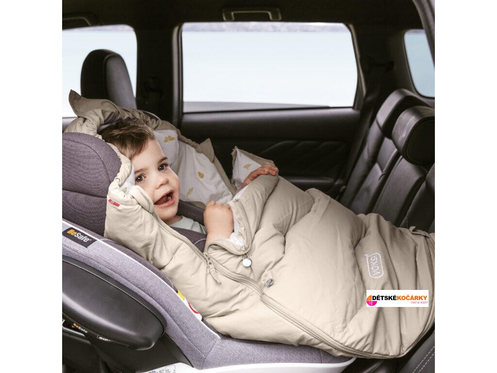 Komfortní fusak nabízí flexibilní využití. Rozepínání fusaku na bocích slouží jako ventilace a umožňuje zmenšit vrchní část, to poskytne dítěti dobrou viditelnost, když chce poznávat svět v sedě. Vrchní část je možné odepnout a spodní díl se může použít jako sedací vložka nebo podložka na hraní. Jedinečný design otvorů pro bezpečnostní pásy na zadní straně fusaku poskytuje rychlé uchycení do různých typů kočárků i autosedaček.