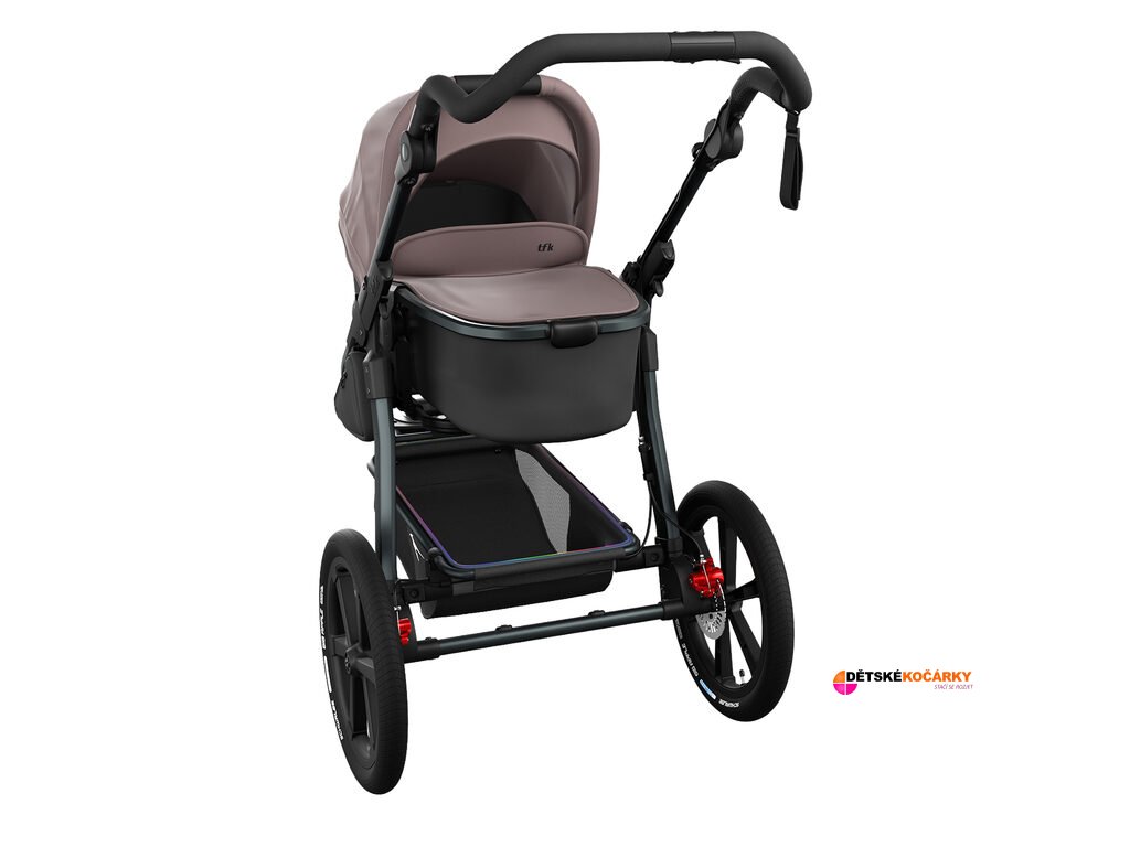 TFK Carrycot Mono3, 4/Pro combi unit je hluboká korba i sportovní sedačka v jednom, kterou lze používat pro děti od narození do 36 měsíců. Přeměna korby na sportovní sedačku je snadná a rychlá a tak poskytuje rodičům velkou míru variability. Ve sportovní verzi je možné ji uchytit v obou směrech jízdy, přidáním opěrky pro nožičky zvětšíte její plochu. Korba je vybavena polohováním, stříška i nánožník jsou z vodoodpudivého materiálu. Korbička na kočárku TFK mono3, mono4 a proA byla v sedící poloze testována a schválena pro sportovní využití.