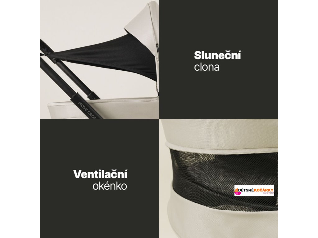 Pohodlí dítěte zajišťuje měkká kvalitní matrace a prodloužitelná stříška s větruodolnou clonou. Korba je ideální do jakéhokoli počasí – ventilační okénka na stříšce, v přední i zadní části a dokonce i na spodní straně korby zajišťují vynikající cirkulaci vzduchu během horkých dnů. Naopak v chladnějším období dítě ochrání hluboký nánožník s protivětrnou clonou.