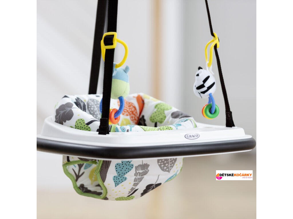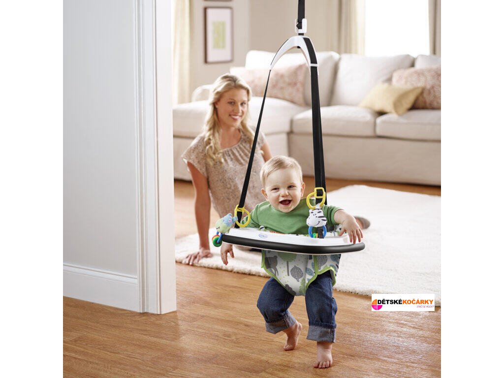 Hopsadlo GRACO Bumper Jumper do dveří zabaví vaše dítě na dlouhou dobu. Jedná se o bezpečného, kvalitního a zábavného společníka na každý den. Kvalitní svorka pevně uchytí hopsadlo na rám dveří, popruhy s ukrytým bezpečnostním lankem pevně drží sedátko, a díky gumovému okraji nedojde k poškození zárubní dveří. Zbývá jen nastavit vzdálenost od podlahy a zábava může začít!