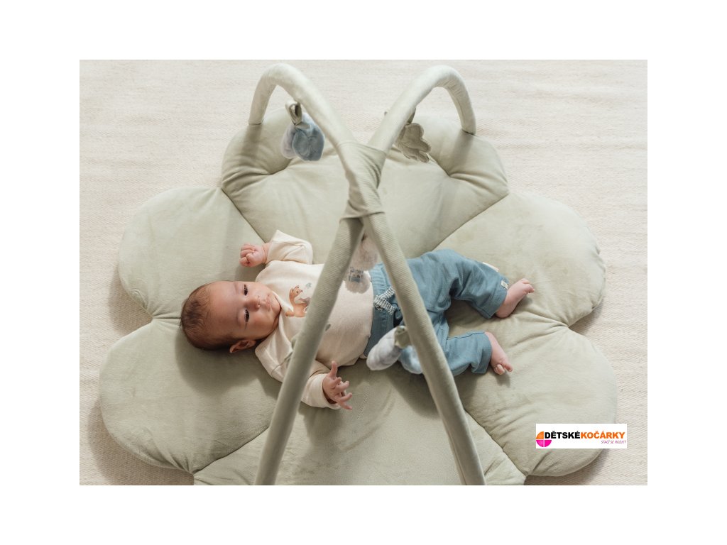 Měkká hrací deka LITTLE DUTCH Miffy ve tvaru čtyřlístku s hrazdou, na které jsou zavěšené hračky v podobě králíčka Miffy, a lístků různých tvarů. Při zkoumání hraček upoutá pozornost dítěte chrastění, šustění, pískání i zvonění. Hračky jsou odnímatelné a je možné je používat i samostatně. Hrací deka s hračkami podporuje rozvoj smyslů dítě i jeho jemné motoriky.