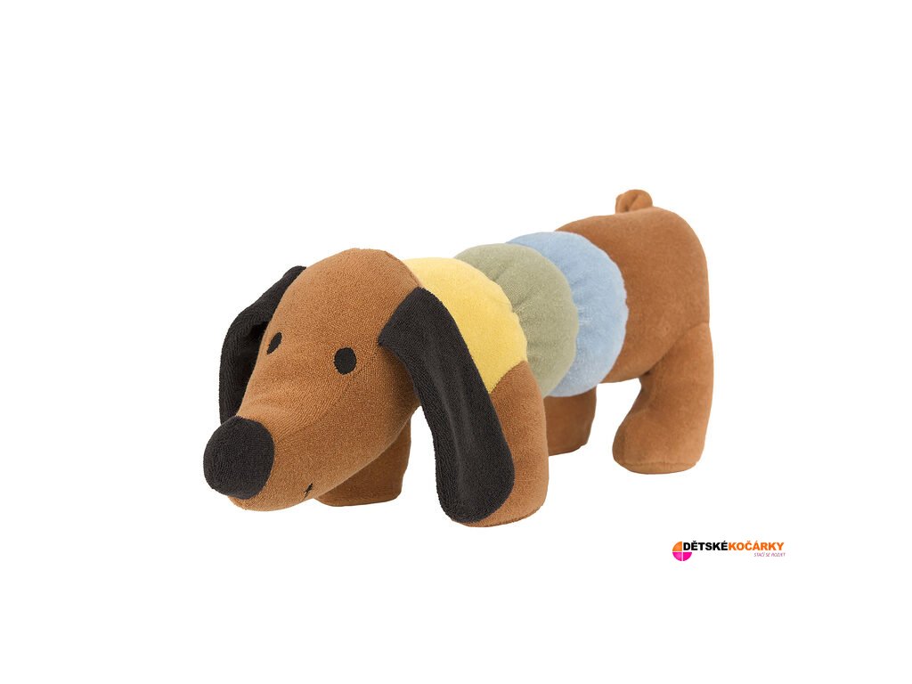 Musical Little Mateys Dogje jedním z dalších výrobků značky LÄSSIG, vyznačující se vysokou kvalitou materiálů, jejich zpracováním a svojí funkčností. Hudební hračka ve tvaru jezevčíka jemně ukolébá nejmenší ke spánku. Po zatažení za ocásek hraje jemnou melodii, která pomáhá nejmenší uklidnit a uspat. Lze zavěsit nad postýlku.