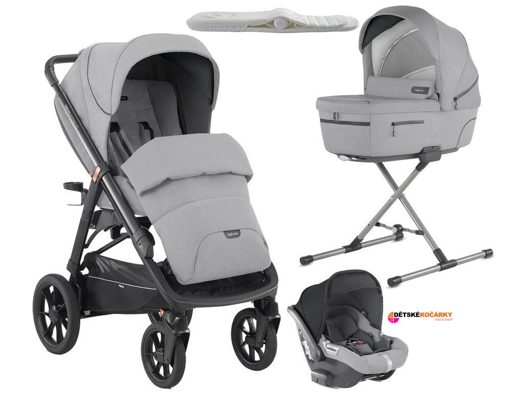 Set obsahuje:podvozek INGLESINA Aptice XT + hlubokou korbičku + sportovní sedačku + stojan Stand UpTM + matraci Welcome PadTM + nánožník + košík + držák nápojů + autosedačku Darwin i-Size