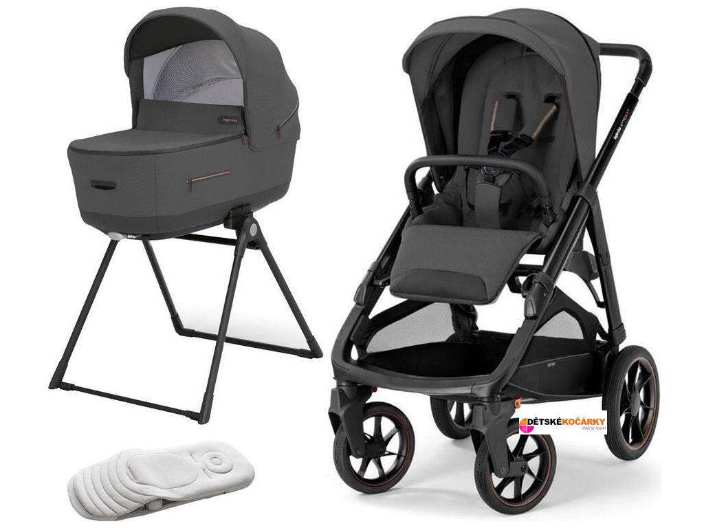 Set obsahuje:podvozek INGLESINA Aptice XT + hlubokou korbičku + sportovní sedačku + stojan Stand UpTM + matraci Welcome PadTM + nánožník + košík + držák nápojů