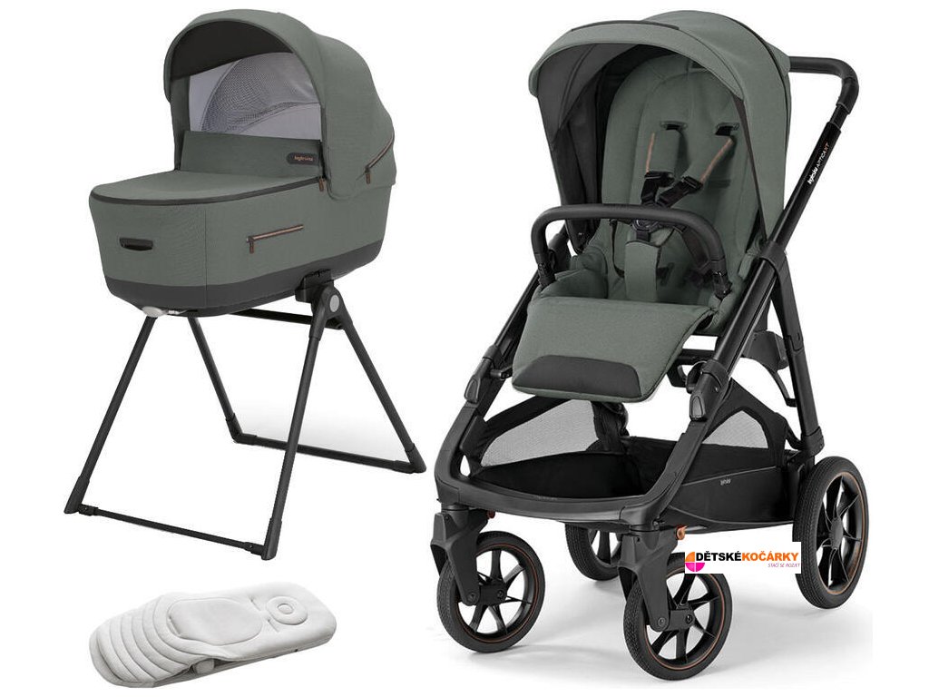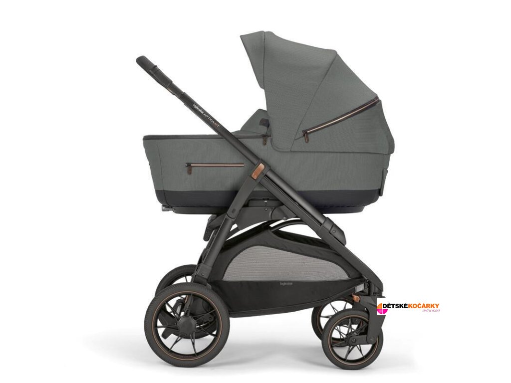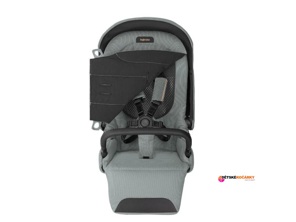 Set obsahuje:podvozek INGLESINA Aptice XT + hlubokou korbičku + sportovní sedačku + stojan Stand UpTM + matraci Welcome PadTM + nánožník + košík + držák nápojů