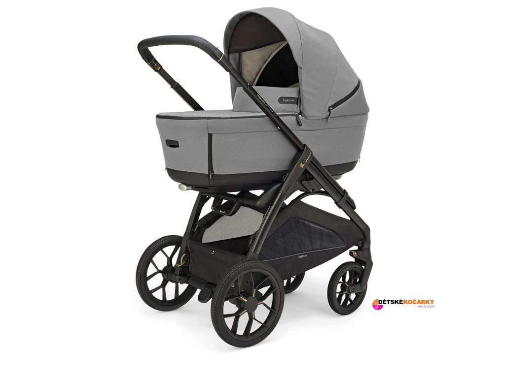 Set obsahuje: podvozek INGLESINA Aptice XT + hlubokou korbičku + sportovní sedačku + stojan Stand UpTM + matraci Welcome PadTM + nánožník + košík + držák nápojů