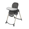 Jídelní židlička MAXI-COSI Minla je multifunkční 6v1 židličkou, kterou může vaše dítě používat od narození do 6 let. Multifunkční židličku využijete jako lehátko pro miminko, vysokou jídelní židličku s pultem i bez, židli ke stolu pro starší děti i jako podsedák na klasickou židli. Vyjímatelná pohodlná vložka pro novorozence je zárukou pohodlí pro miminka od narození. Židlička nabízí 9 nastavení výšky a je tak vhodná téměř ke každému stolu. Zadní opěrku můžete nastavit do 5 různých poloh od ležení po sezení. Variabilitu nastavení doplňují 4 varianty polohování nohou a 2 pozice podpěrky na nohy. Jídelní pult nabízí 4 různé možnosti použití a je možné jej zavěsit na zadní nohy židličky. Odnímatelný tác na jídelním pultu usnadňuje jeho údržbu po stolování.