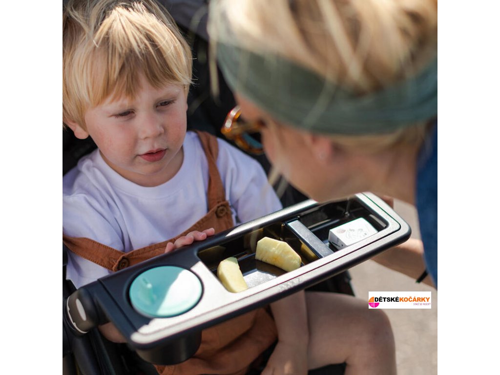 Díky pultíku na svačinu Joolz má váš malý miláček vždy po ruce občerstvení, nápoje i hračky. Pultík se jednoduše nasadí na místo předního madla.