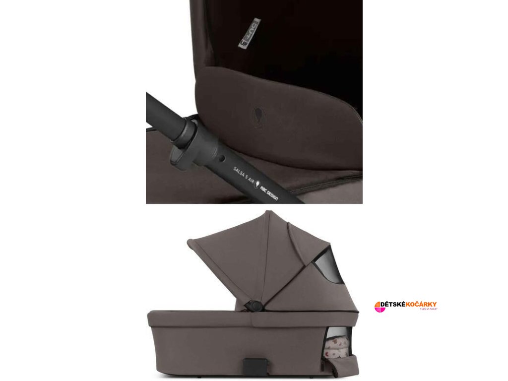 Hluboká korba ABC DESIGN Salsa 5 Air nabízí maximální pohodlí pro vaše novorozené miminko. Dvě samostatně použitelná ventilační okna zajišťují optimální cirkulaci vzduchu. Svůj poklad máte navíc stále na očích. Ergonomická matrace CozyCloud® má na hlavovém konci klínovitý tvar, takže hlavička dítěte je vždy zvednutá. Integrované větrací otvory v pěně matrace CozyCloud® zajišťují optimální ventilaci. Navíc má extra měkký a zvýšený ochranný okraj, aby se citlivá pokožka hlavy vašeho miláčka nedostala do přímého kontaktu s ventilačním okénkem. Když cestujete autem, můžete dětskou vaničku složit, abyste ušetřili místo a snáze ji uložit do kufru. Aby si lahve, dudlíky, ubrousky atd. našly své místo, je na uvnitř vaničky praktický organizér s kapsou. Paměťová funkce držáků na korbičku a nově i kryt na korbičku nabízí rodičům mimořádný komfort. Jediným kliknutím můžete odemknout držáky jeden po druhém a mít vždy jednu ruku volnou k držení rukojeti. Díky tomu je pro vás sejmutí vaničky z rámu vašeho kočárku ještě jednodušší a bezpečnější. Na stejném principu můžete nyní také uvolnit držák stříšky a nastavit velkou sluneční stříšku korbičky bez námahy a pohodlně. Díky dvěma praktickým posuvníkům na dně vaničky ji rychle složíte a uložíte do kufru pro úsporu místa.