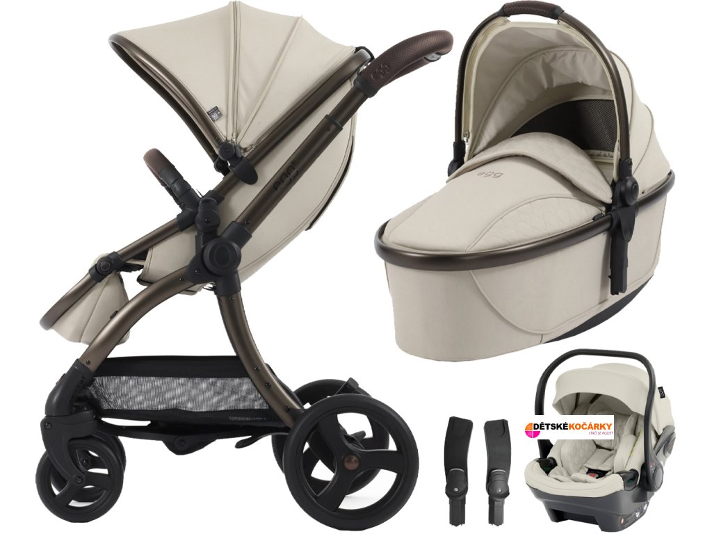 Kočárky EGG jsou navrženy ve Velké Británii s ohledem na rodiče, kteří mají styl, a představuje tak koncept evoluce následující myšlenku „Inspired Luxury Design“. Jejich nejnovější verze, kočárek egg3, se vyznačuje vylepšenou prodloužitelnou stříškou, která je ideální pro denní spánek nebo pro plnou ochranu vašeho děťátka před sluncem díky tkaninám s ochranou UPF 50+. Součástí stříšky je také větrací okénko pro optimální proudění vzduchu, které lze bezproblémově uzavřít pomocí magnetů všitých do textilie stříšky. Dále má kočárek vylepšení dotahování dítěte v sedací částí kočárku, hluboká korba má vlastnost houpátka pro domácí užití a uspání dítěte na cestách mimo kočárek. Rám kočárku egg3 po složení samostatně stojí na kolech, aniž by se jeho rukojeť dotýkala podlahy, samozřejmostí zůstalo komfortní skládání jednou rukou. Robustnější pláště kol s technologií Tru-Ride® zabraňující defektu díky novému dezénu ve tvaru vejce „egg“. Komfort jízdy je srovnatelný s nafukovacími koly. Obecně platí, že vyšší a delší podvozek vytváří větší prostor mezi jednotlivými tandemovými konfiguracemi a právě to je případ egg3.