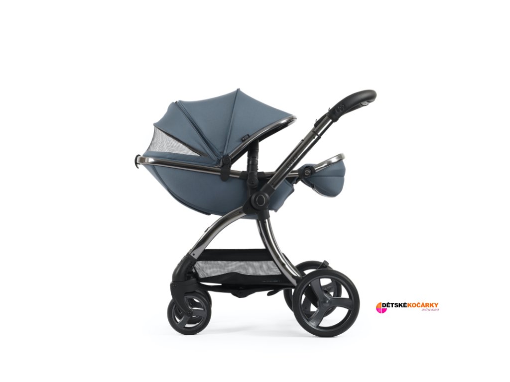 Set obsahuje: podvozek s koly + sedací část s boudou + textilní košík + pláštěnku + nánožník + moskytiéru