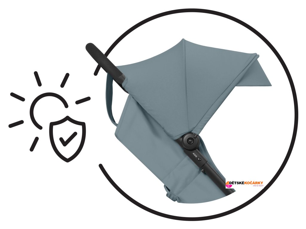 S kočárkem Agis zvládnete projet každým terénem – i proto je oblíbenou volbou cestovatelů. Pokročilé odpružení rámu a předních koleček zaručuje hladkou jízdu a špičkovou manévrovatelnost. Ochranu dítěte před slunečními paprsky a příjemný chládek zajistíte s pomocí výsuvné sluneční stříšky s ochranou UPF50+ a větracích otvorů v opěradle. Průzor poskytuje ochranu navíc i v ty nejslunečnější dny. Dvě polohy opěradla jsou nastavitelné pouze jednou rukou - polonakloněná poloha je vhodná pro odpočinek, vzpřímenější poloha přináší větší oporu při cestování. Když dochází prostor, Agis rychle složíte zmáčknutím dvou tlačítek do cestovní velikosti vhodné i jako příruční zavazadlo. Kočárek se tak i snadno skladuje, protože ve složené poloze samostatně stojí.