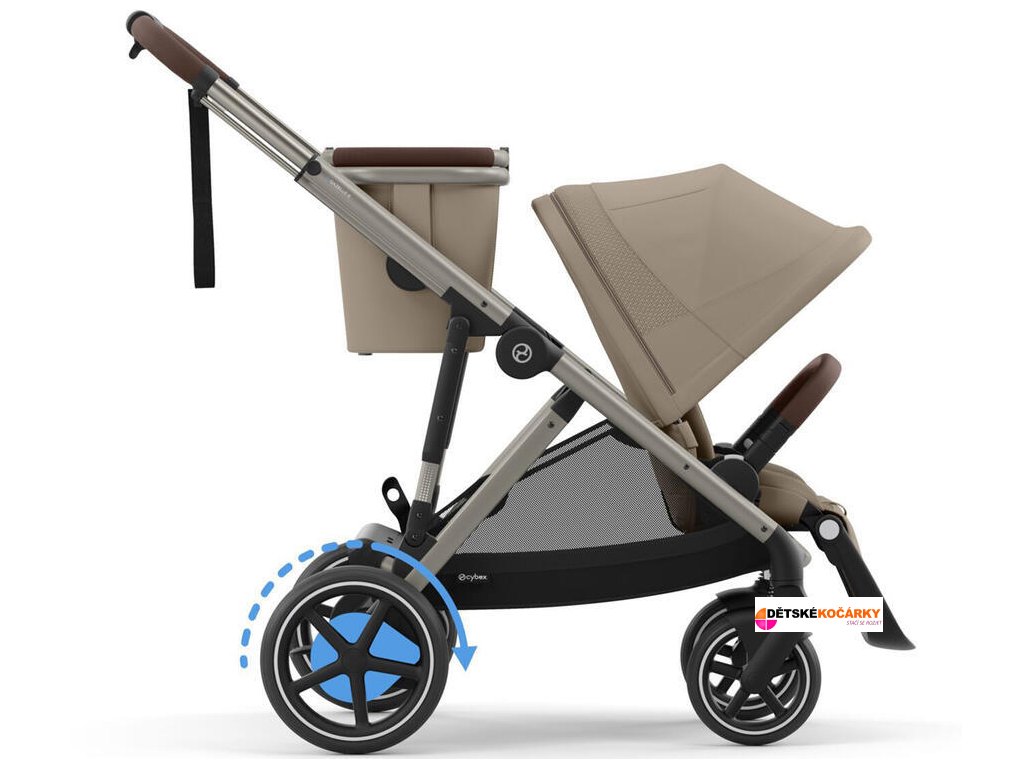 Model CYBEX e-Gazelle S je vybaven dvěma velkými nákupními košíky, je tedy ideální na nákupy, a jakmile budete mít druhé dítě, můžete jej změnit na dvojitý kočárek. Kombinace spodního košíku s dodatečným, sundavacím nákupním košíkem dělá z kočárku dokonalého společníka jak na nákupy na pravidelných trzích, tak i pro objížďku obchodů v centru města. S více než 20 různými kombinacemi sportovních nástaveb, korbiček nebo dětských autosedaček CYBEX dokáže kočárek růst společně s vaší rodinou. Sportovní nástavbu lze navíc nastavit do ergonomické polohy zcela vleže, díky které je CYBEX e-Gazelle S ideální volbou již od samotného začátku vaší rodinné cesty. Díky pásu na jedno zatažení je bezpečné a pohodlné děti usazovat – což je navíc užitečné, pokud to děláte dvakrát. Navzdory své velikosti se model CYBEX e-Gazelle S skládá do dostatečně kompaktní velikosti, aby se vešel úložného prostoru doma nebo do kufru auta.